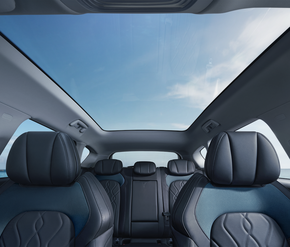Suuri panoraamakattoluukku tarjoaa ainutlaatuisen ajokokemuksen. Intuitiivisen kosketusnäytön avulla voit helposti säätää panoraamakattoluukkua mieltymystesi mukaan ja luoda unohtumattoman kokemuksen kaikille matkustajille.