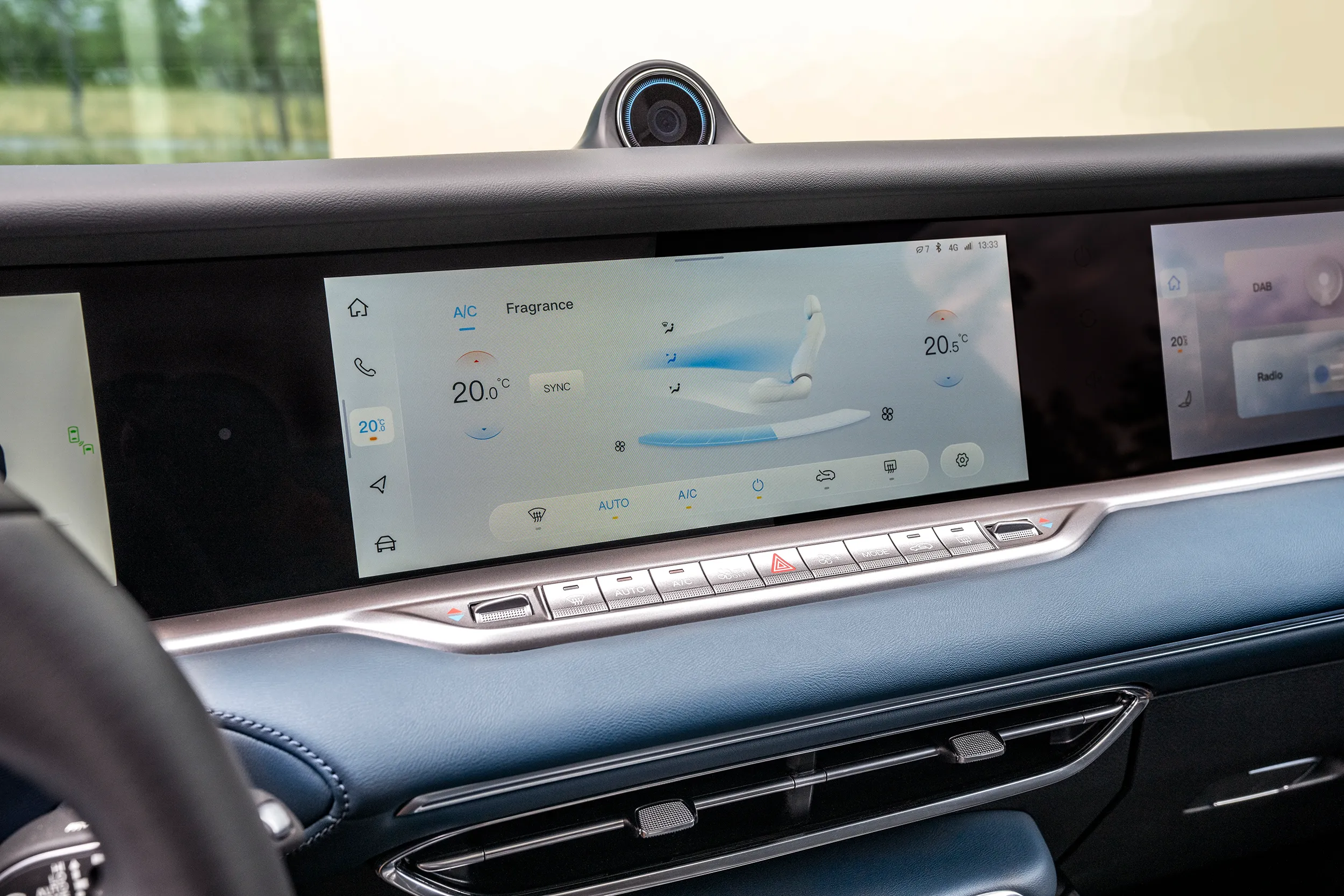 VOYAH FREE:n mittaristo tarjoaa kolme 12,3-tuumaa näyttöä, jotka tarjoavat maksimaalisen liitettävyyden ja käyttömukavuuden. Infotainment-järjestelmää ja matkustajan näyttöä ohjataan helposti kosketusnäytöllä.